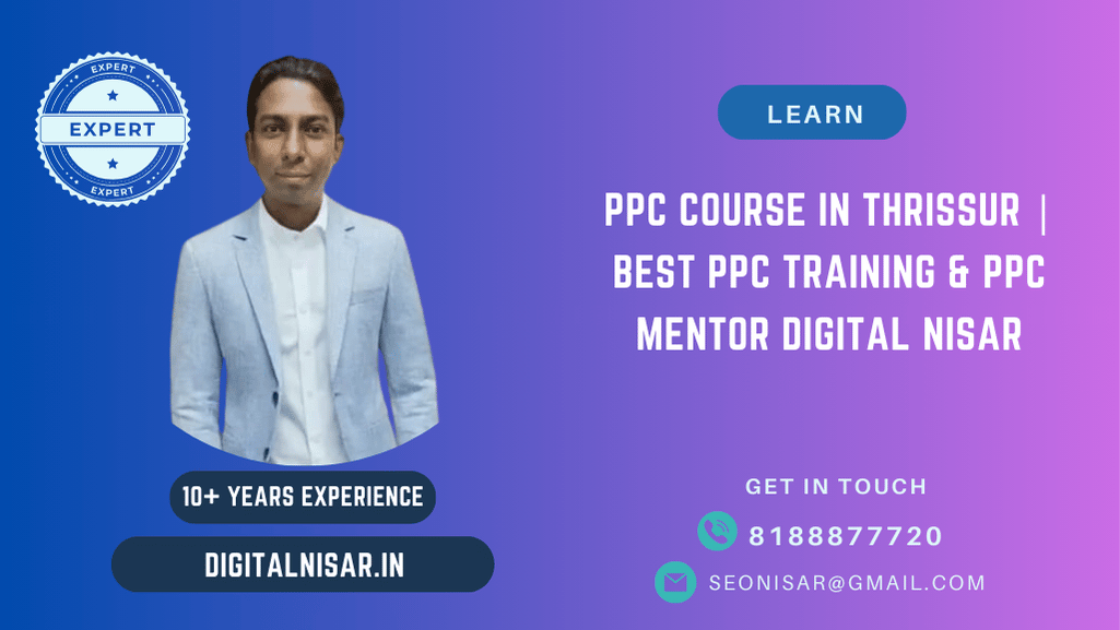 Looking for the Best PPC Course in Thrissur? Your search ends here with Digital Nisar the most trusted PPC Expert in Thrissur with over a decade of practical experience in running profitable Google Ads campaigns. Whether you are a student freelancer entrepreneur or small business owner our result oriented PPC Training in Thrissur will turn you into a certified PPC Expert in Thrissur ready to generate leads and sales online.
